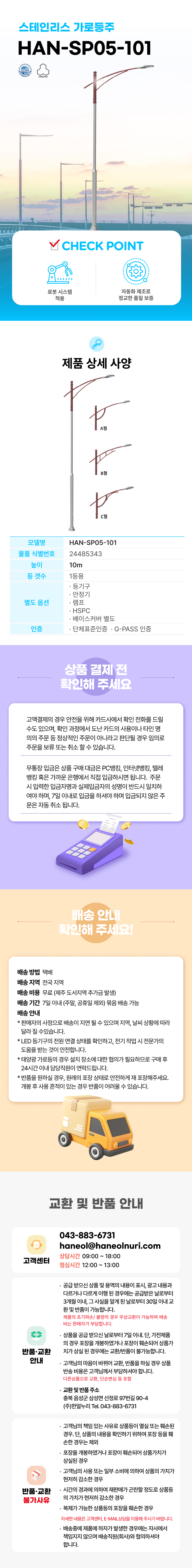• * 태양광 가로등의 경우 설치 장소에 대한 협의가 필요하므로 구매 후 24시간 이내 담당직원이 연락드립니다.