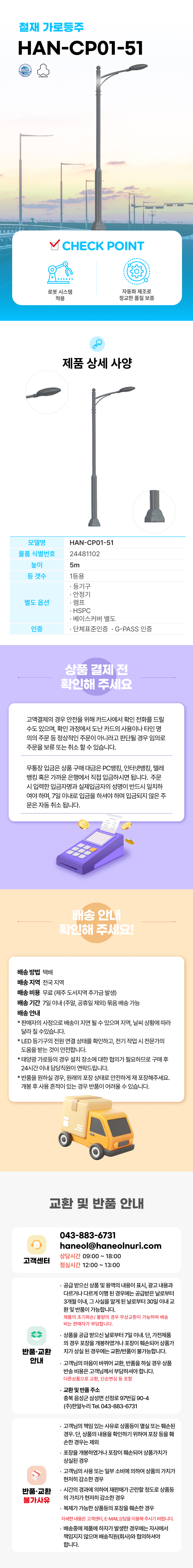 • * 태양광 가로등의 경우 설치 장소에 대한 협의가 필요하므로 구매 후 24시간 이내 담당직원이 연락드립니다.