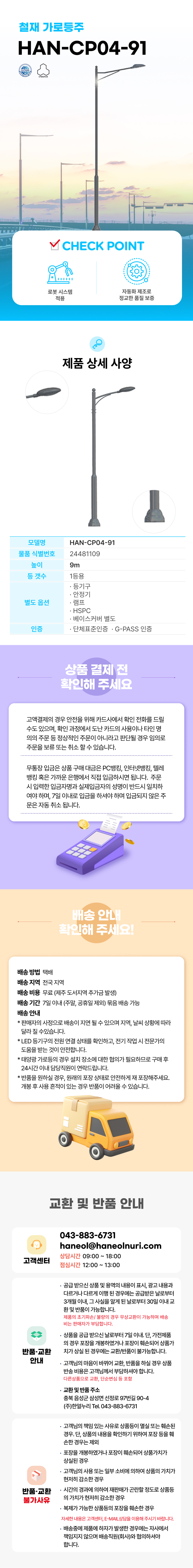• * 태양광 가로등의 경우 설치 장소에 대한 협의가 필요하므로 구매 후 24시간 이내 담당직원이 연락드립니다.