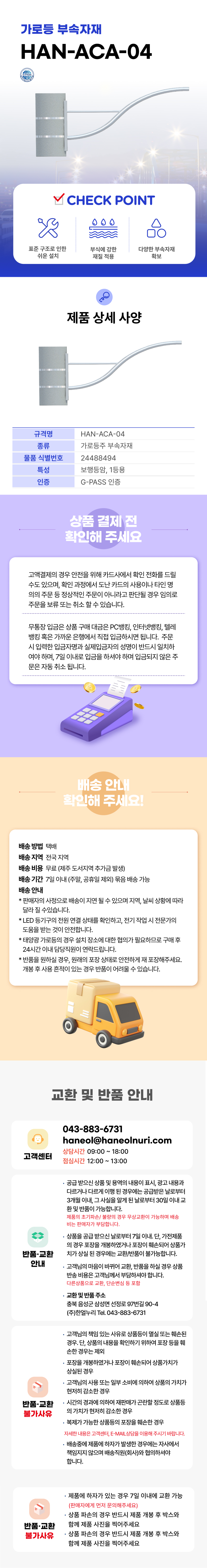 • * 태양광 가로등의 경우 설치 장소에 대한 협의가 필요하므로 구매 후 24시간 이내 담당직원이 연락드립니다.