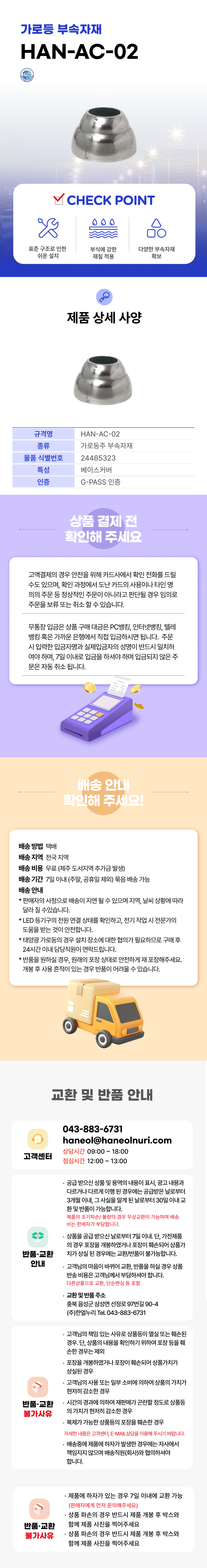 • * 태양광 가로등의 경우 설치 장소에 대한 협의가 필요하므로 구매 후 24시간 이내 담당직원이 연락드립니다.