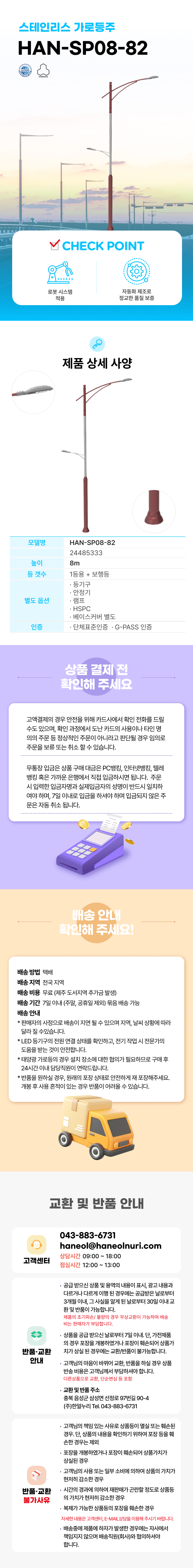 • * 태양광 가로등의 경우 설치 장소에 대한 협의가 필요하므로 구매 후 24시간 이내 담당직원이 연락드립니다.