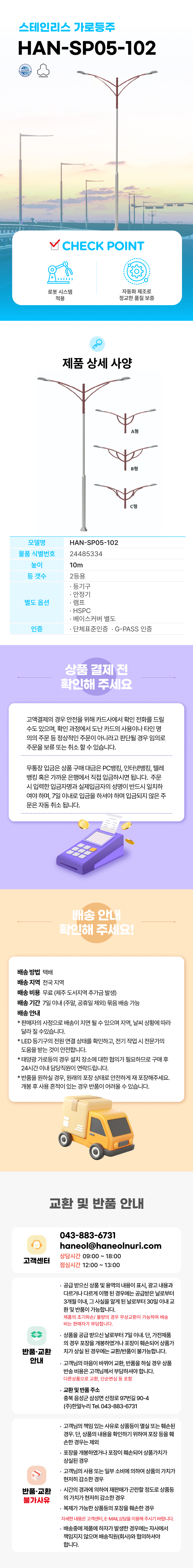 • * 태양광 가로등의 경우 설치 장소에 대한 협의가 필요하므로 구매 후 24시간 이내 담당직원이 연락드립니다.
