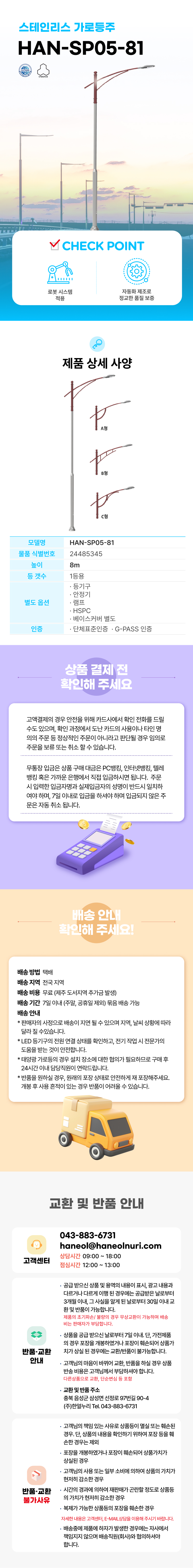 • * 태양광 가로등의 경우 설치 장소에 대한 협의가 필요하므로 구매 후 24시간 이내 담당직원이 연락드립니다.