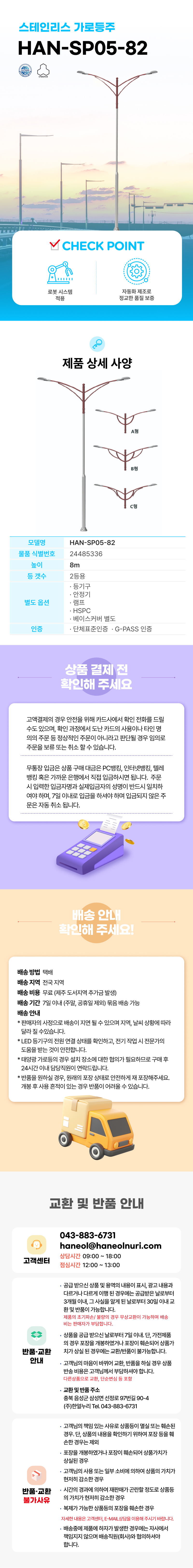 • * 태양광 가로등의 경우 설치 장소에 대한 협의가 필요하므로 구매 후 24시간 이내 담당직원이 연락드립니다.